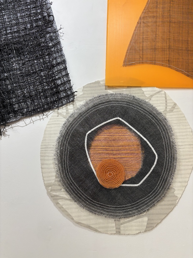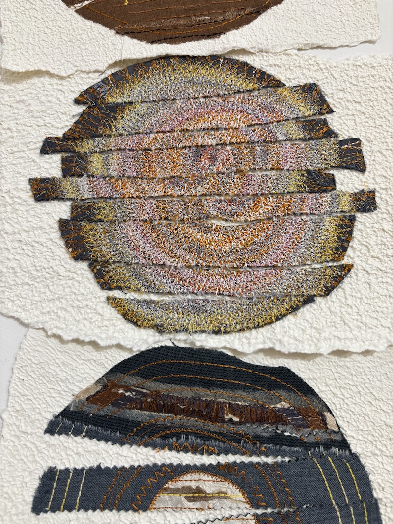 Sue Evans also studied Fine Art as a mature student. On graduation she became a founder member of SVAF and subsequently gained her MFA at West Dean. Sue experiments with and investigates the qualities of cloth, usually repurposed fabric, by layering, fraying, weaving and distressing to make surfaces on which to stitch. Images seek to provoke t whether they are forming, disintegrating, renewing or decaying.